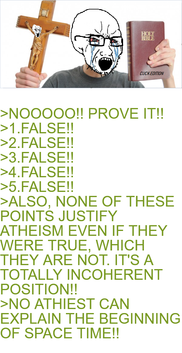 >>365218Yeah facts, I totally understand not getting the origins of time of space, but in that case just be an agnostic, don't just make up some mythical "god."